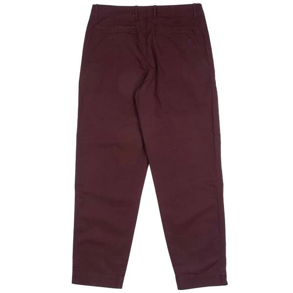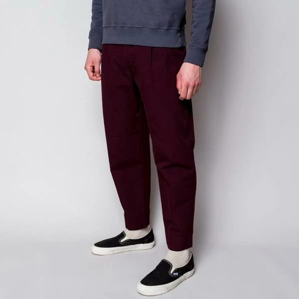 Wider, looser leg fit with cropped length with pleat detail at front > Grown on waistband with self fabric belt loops Concealed button closure at fly with corozo nut buttons; top button at w/band exposed > Angled twin jet pockets at the front > Straight welt pockets at back on both sides with profile stitch detail > Triple topstitch detail running down outer leg seam; thread colour tonal to shell colour > Style is unlined and neatly bound internally in 100% cotton poplin > Offered in a cotton ripstop, garment dyed giving depth and character of colour. 100% Cotton FM5618W