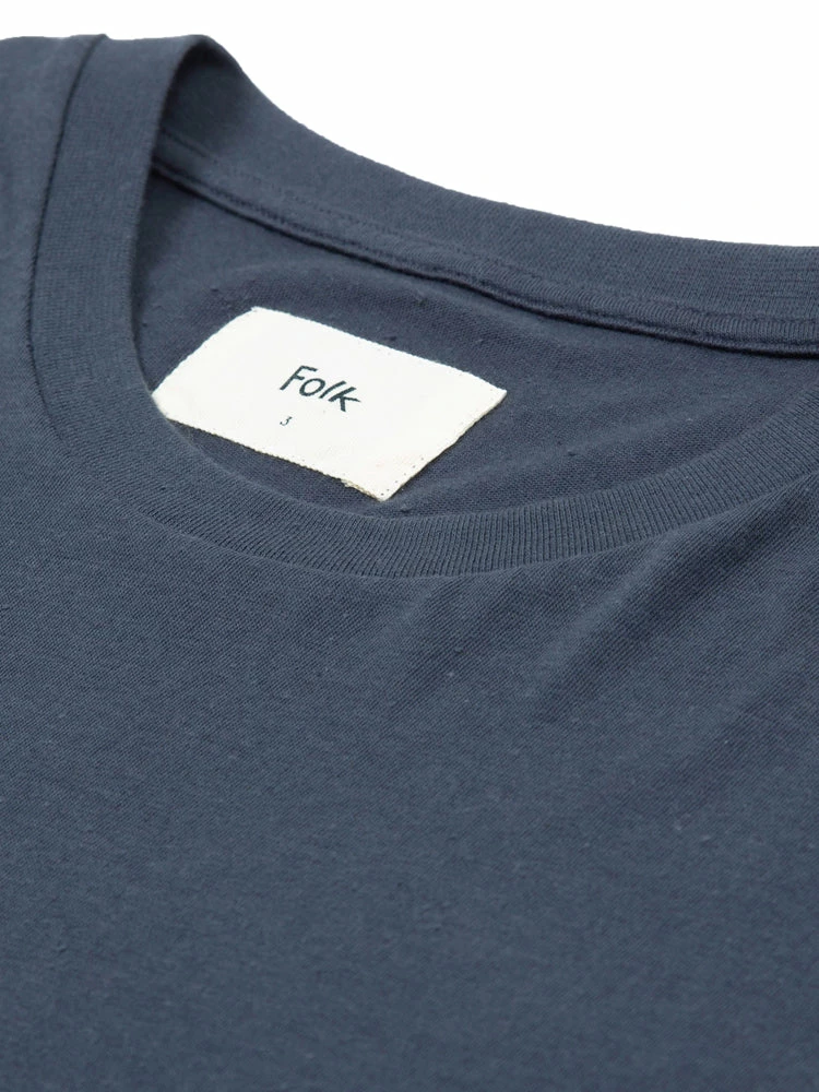 The Assembly T-Shirt from Folk is an everyday essential. The relaxed fit, short sleeve tee has been cut in 100% cotton with a slubbed texture and is finished with a classic Folk rubber circle branding at hem. Relaxed fit short sleeve tee block 100% Cotton, soft handle jersey with neppy, slubbed texture 1×1 rib crew neck collar Twin-needle finish at hem and cuffs Folk rubber circle branding at hem.