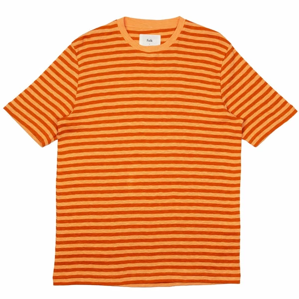 Regular fit short sleeve t-shirt in a classic stripe design. In a summery cotton single jersey fabric with a slubby, linen look, texture. Details: 100% Cotton, Regular fit, Rib crew neck collar, Narrow printed stripe design, Twin-needle finish at hem and sleeve cuffs