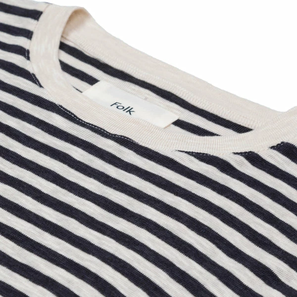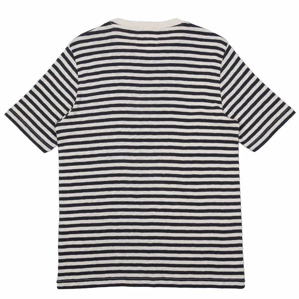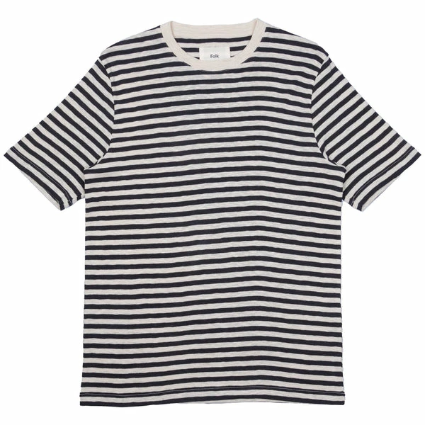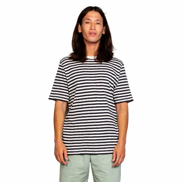 Regular fit short sleeve t-shirt in a classic stripe design. In a summery cotton single jersey fabric with a slubby, linen look, texture. Details: 100% Cotton, Regular fit, Rib crew neck collar, Narrow printed stripe design, Twin-needle finish at hem and sleeve cuffs