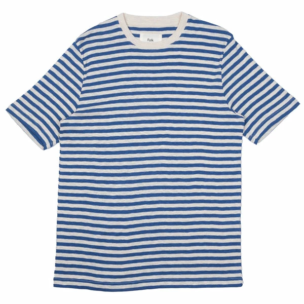 Regular fit short sleeve t-shirt in a classic stripe design. In a summery cotton single jersey fabric with a slubby, linen look, texture. Details: 100% Cotton, Regular fit, Rib crew neck collar, Narrow printed stripe design, Twin-needle finish at hem and sleeve cuffs