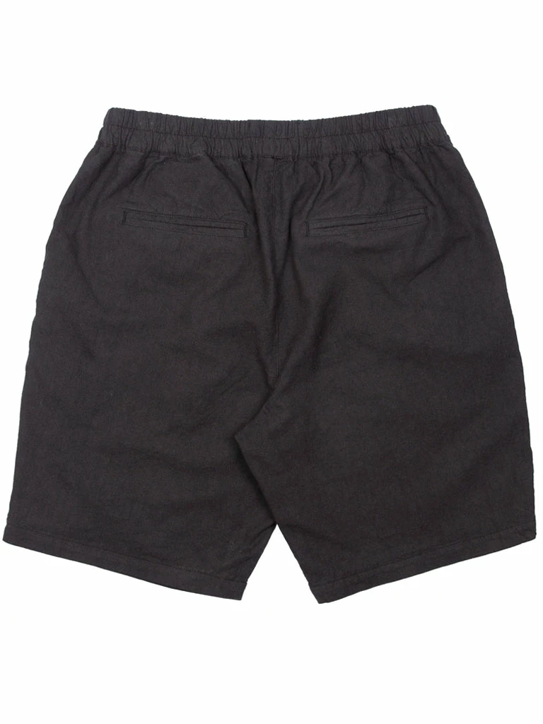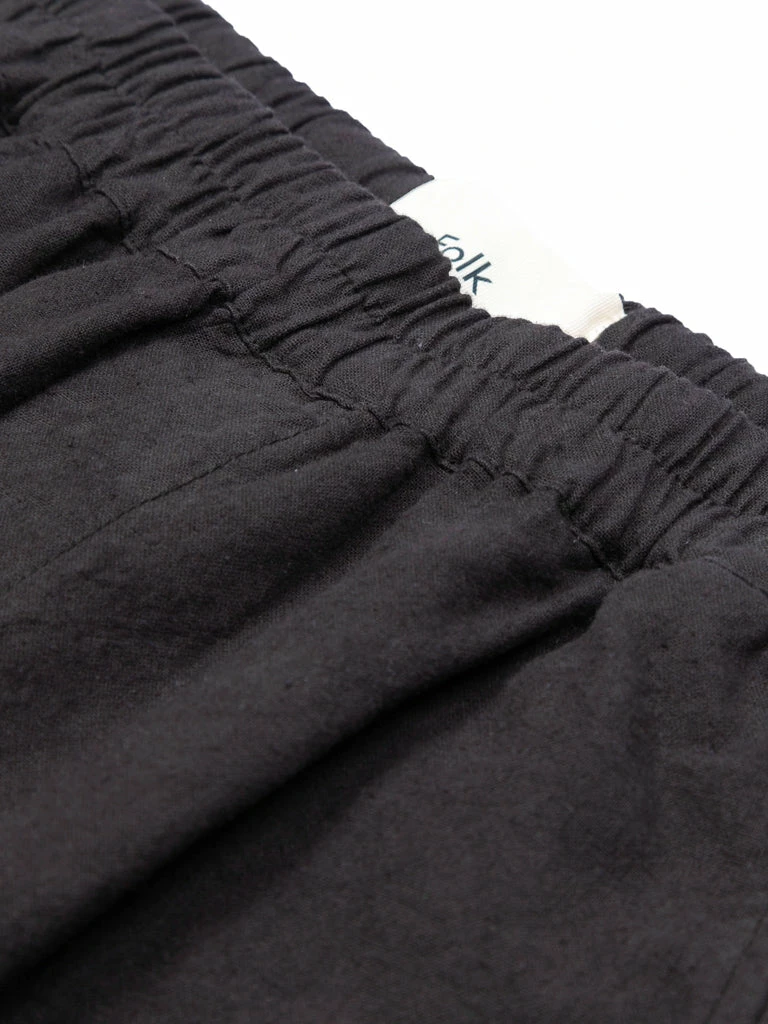 The Cotton Linen Shorts from Folk feature an elasticated waistband with drawcord finished internally through embroidered eyelets, straight twin jet pockets at the back with barracks and slanted welt pockets at front. The shorts have been garment dyed to give depth and character of colour. 55% Linen, 45% Cotton Regular short block Elasticated waistband in self-fabric, with drawcord Drawcords are flat 100% cotton tape that matches to shell colour Drawcords finished with turned and stitched ends. Flat, self-fabric piping detail at outer leg seam Slanted welt pockets at front Straight twin jet pockets at the back with bartacks Style is garment dyed; giving depth and character of colour.