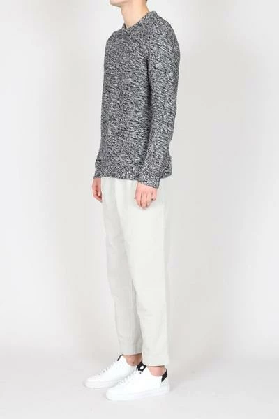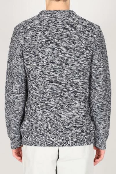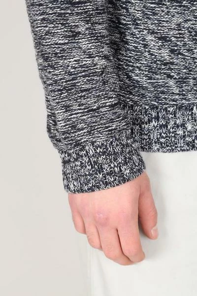 The Irregular Stripe Crew is in an 100% cotton 2/20’s yarn, knitted in a 5gauge. The yarn is a mixture of 3 different colours used together. The knit structure is a linear texture, used on the reverse side to give a cleaner look. The neck is finished with our ‘stuffed collar’ and the cuffs and hem are in a 2 x 2 rib.