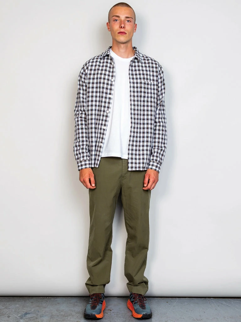 Based on the bestselling Assembly Pant from Folk, the Lean Assembly Pants have a narrower, leaner leg shape and slimmer silhouette. Crafted from 100% cotton, they look smart but feel soft. Finished with two angled twin jet pockets at the front, straight welt pockets at back and a button fly. The trousers have been garment dyed giving depth and character of colour. 100% Cotton Grown on waistband with self fabric belt loops Button fly with Corozo nut buttons Angled twin jet pockets at the front Straight welt pockets at back Triple topstitch detail running down outer leg seam Garment dyed giving depth and character of colour Machine wash cold