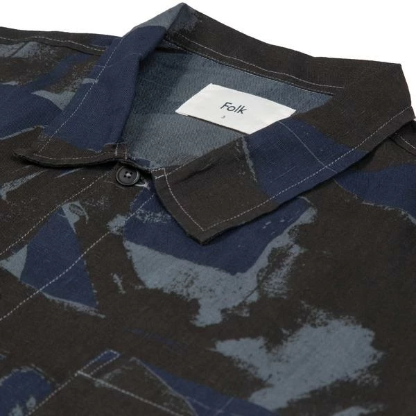 Relaxed fit, long sleeve shirt > Slightly larger collar shape with longer point > Linen cotton slubbed fabric with original Folk Olio print design > Grown on placket at centre front with corozo nut button closure > Cuffs with button closure and square placket shape > Square patch pocket at chest > Clean, straight hem with split vents at side seams 56% Linen 44% Cotton FM5638J