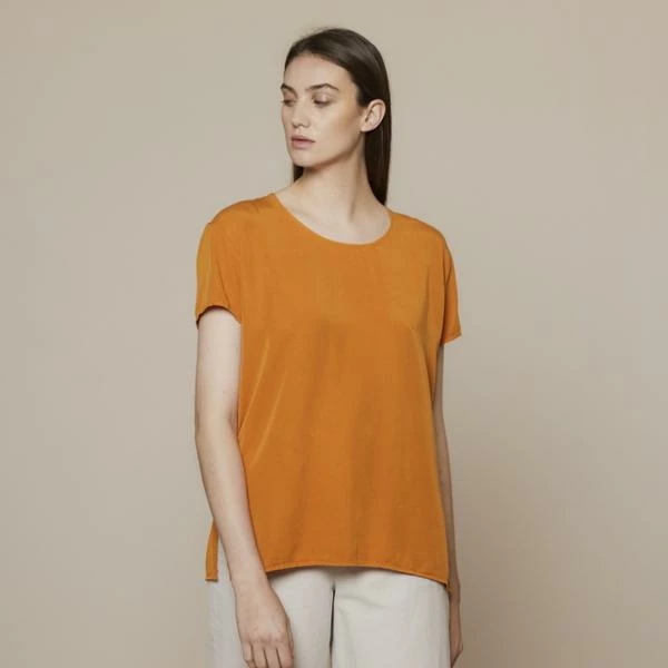 This relaxed, short sleeved top has been cut from fluid lyocell for a comfortable feel and flattering fit. It features a clean, crew neckline, reverse seam detailing and side seam splits. A great layering piece, this wardrobe staple can easily be dressed up or down. 100% lyocell Machine wash WFW3525