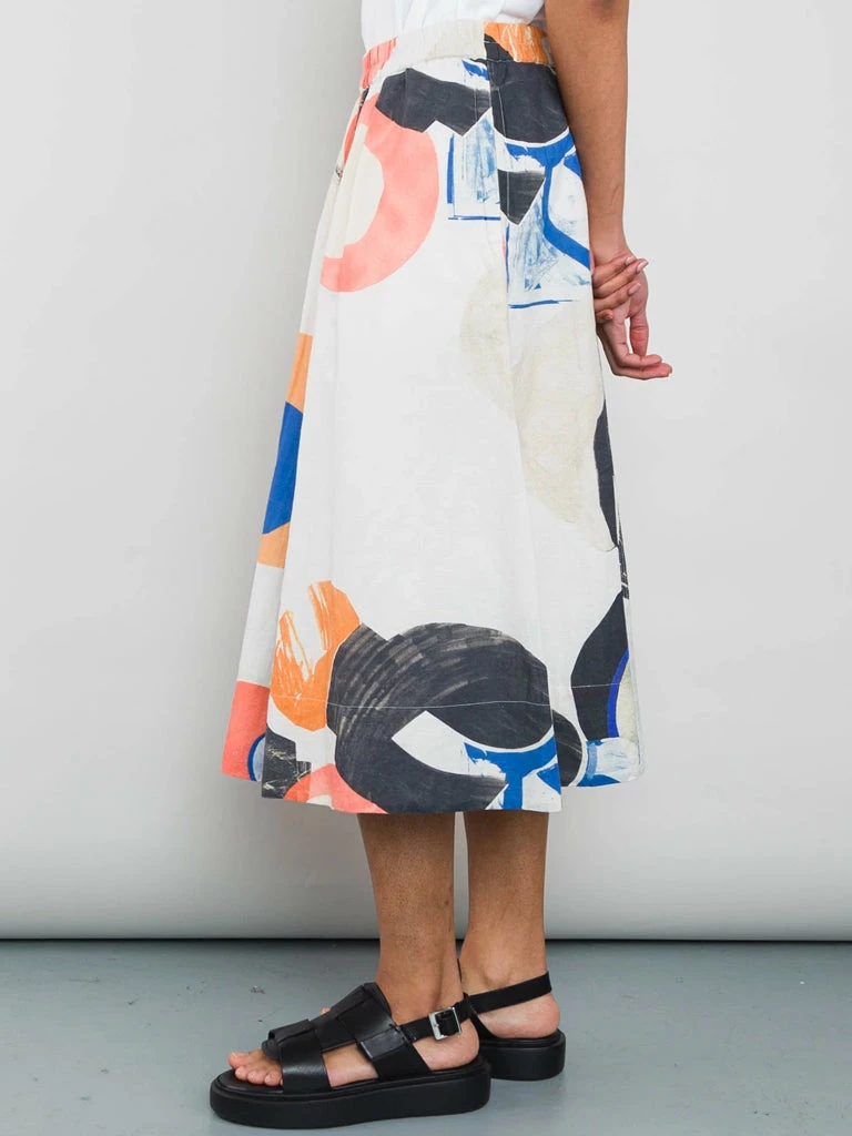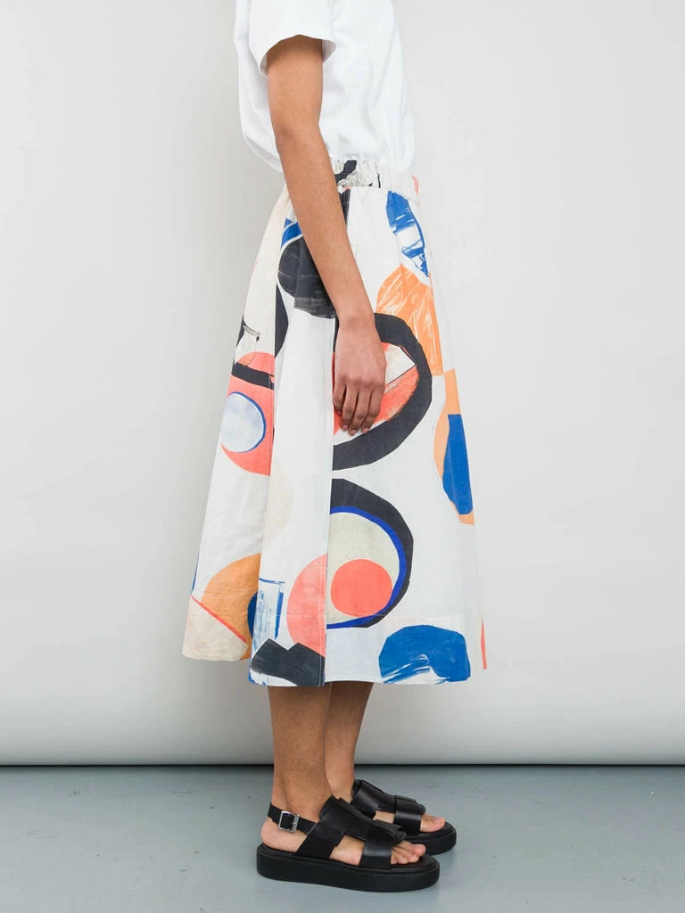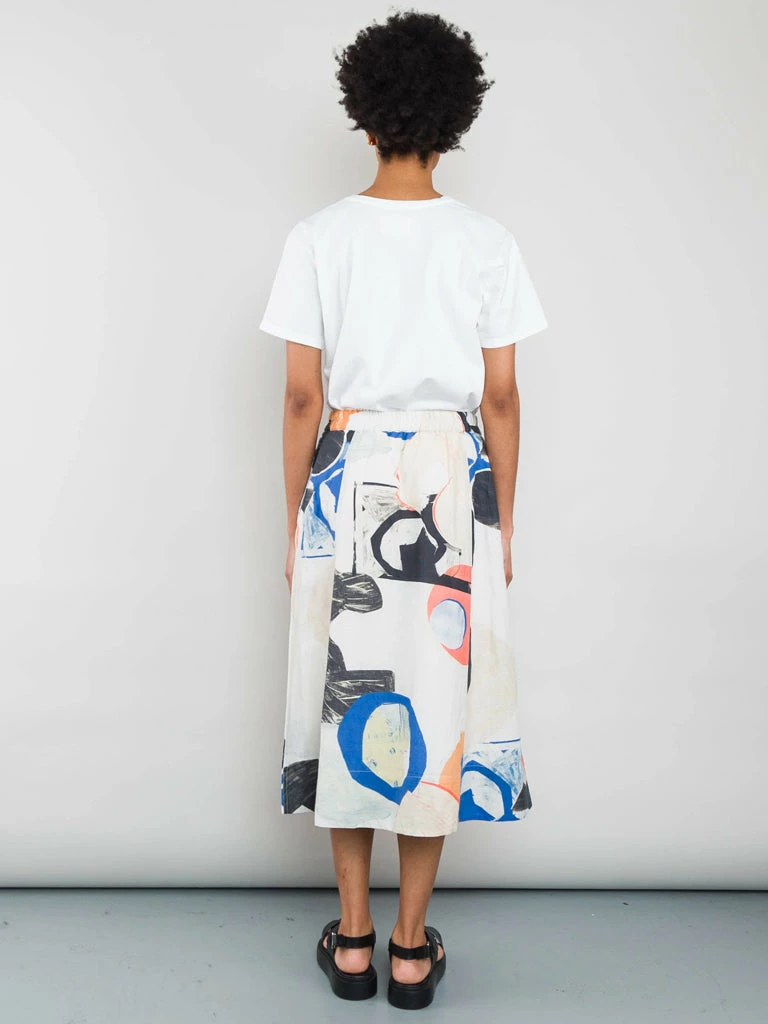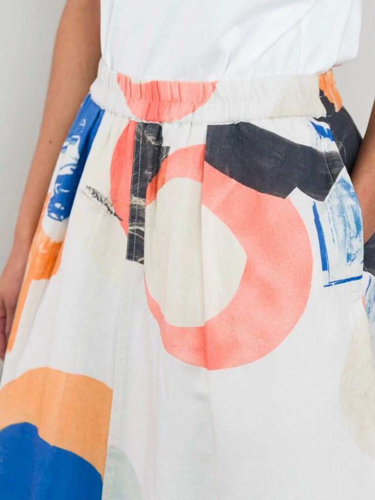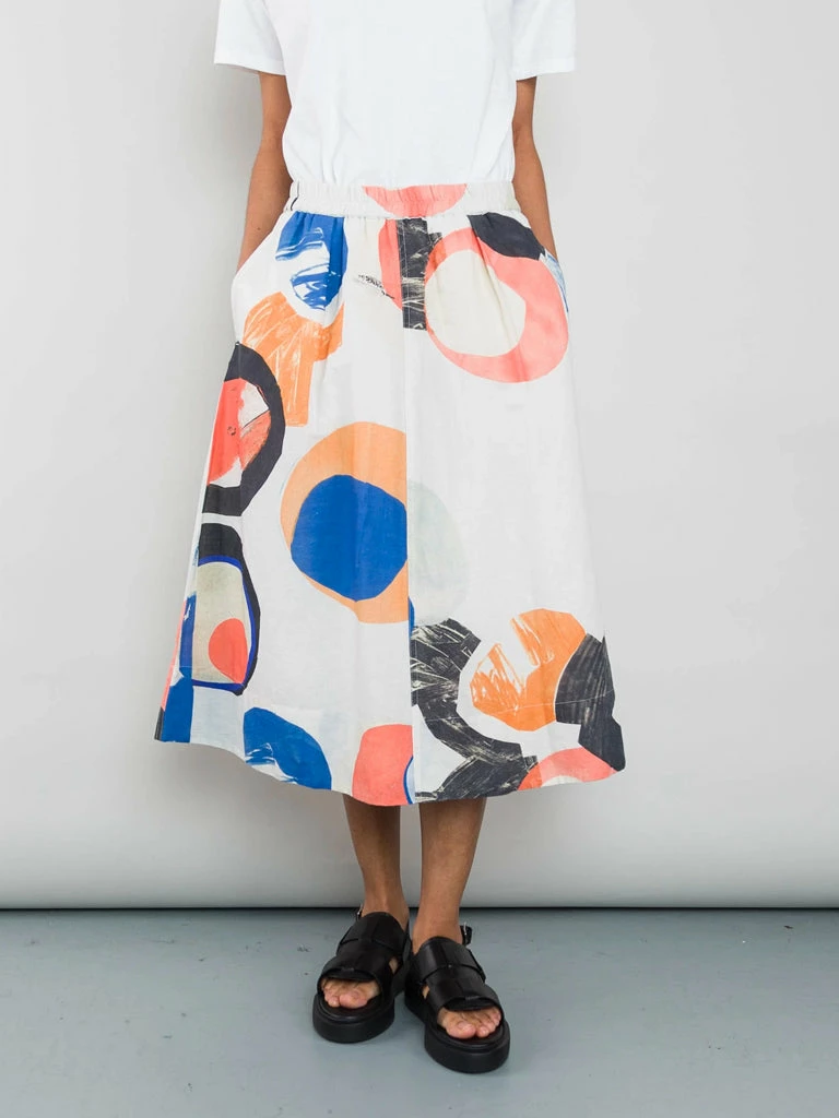 Folk’s Multi Dot Skirt is a full mid-length skirt with double pleats on the front, an elastic waistband and inseam side pockets. The unique skirt has been crafted in a bold patterned print, designed specifically for Folk. Twin needle top-stitching detail Full mid-length skirt in ecru multi dot Inseam side pockets Double pleats on the front In Folk original print design 100% Cotton Model is 5’8″ and is wearing a size 10