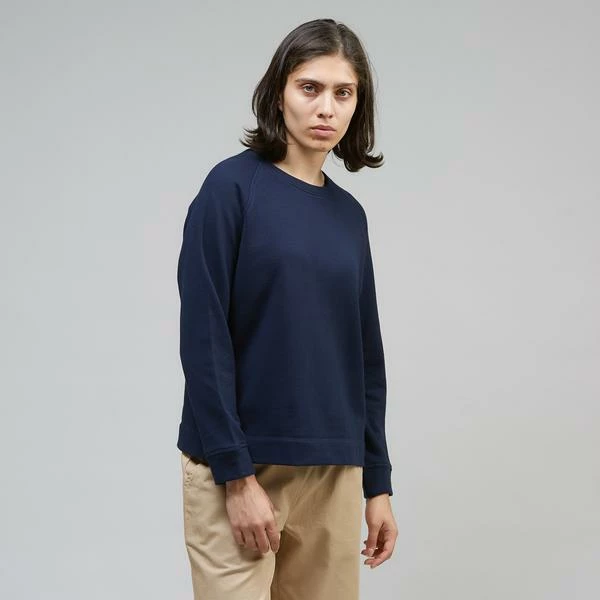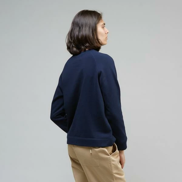 Our classic raglan sleeve sweat, decorated with a subtle, multi stitch detail at the centre back. Cut from soft Japanese cotton in classic navy, this style has a relaxed fit in the body and a folded hem. Finished with cuffs in matching jersey for a clean and easy look. 100% cotton