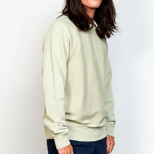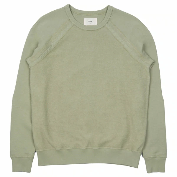 Classic fit sweat, garment dyed for depth of colour. Body of garment is in jersey loopback used on reverse side, while sleeves are in jersey loopback used on face side. Featuring a miniature metal rivet at end of dart in matching colour to sleeve and raglan sleeves feature reverse seam detail with cover-stitch. Model is 6ft and wears size 3. Composition: 100% Cotton Care: Cool machine wash