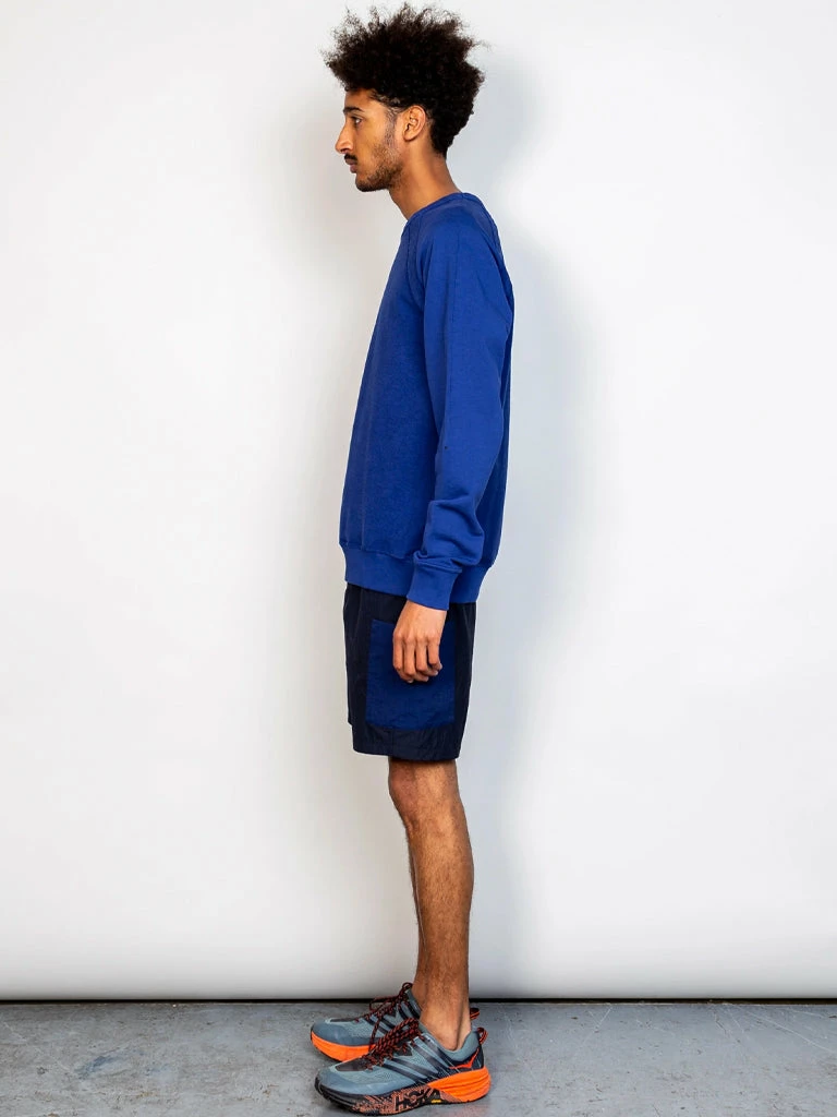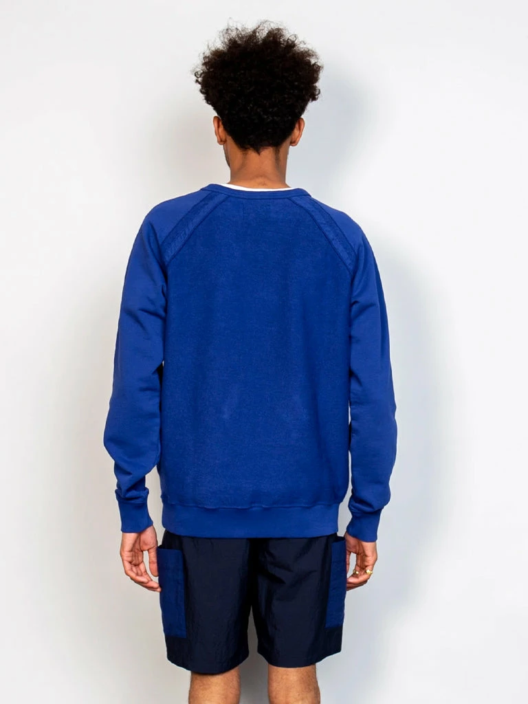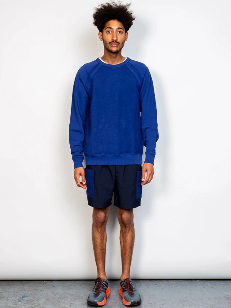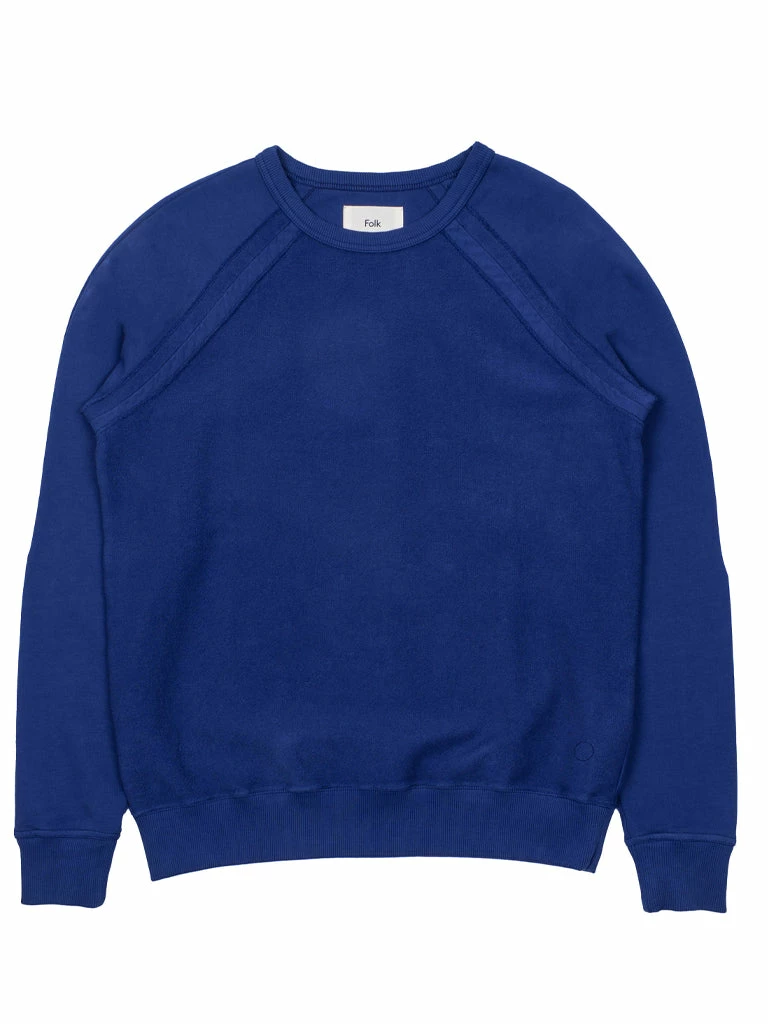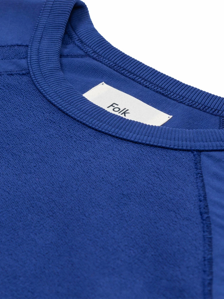 The Reworked Rivet Sweat is a new take on a Folk classic. Crafted from 100% cotton, the body of garment has jersey loopback used on the reverse side, while the sleeves are in jersey loopback used on the face side. Featuring a chunky 2×2 rib crew neck collar, cuffs and hem. Finished with a raglan sleeve with reverse seam detailing and a signature metal rivet at the end. Garment dyed for depth and character of colour. 100% Cotton Body of garment is in jersey loopback used on reverse side Sleeves are in jersey loopback used on face side Miniature metal rivet at end of dart in matching colour to sleeve Raglan sleeves feature reverse seam detail with cover-stitch Top stitching detail at side seams Chunky 2×2 rib crew neck collar, cuffs and hem; secured with twin-needle Circle embroidery stitch branding detail Garment dyed for depth of colour Model is 6ft and wears size M