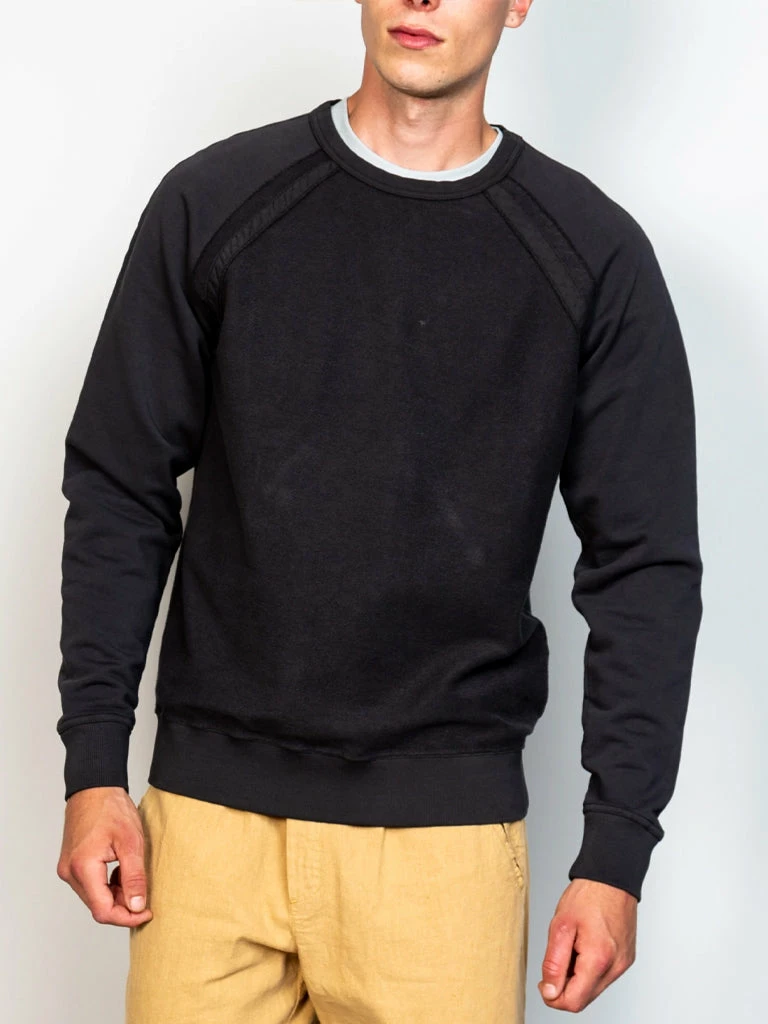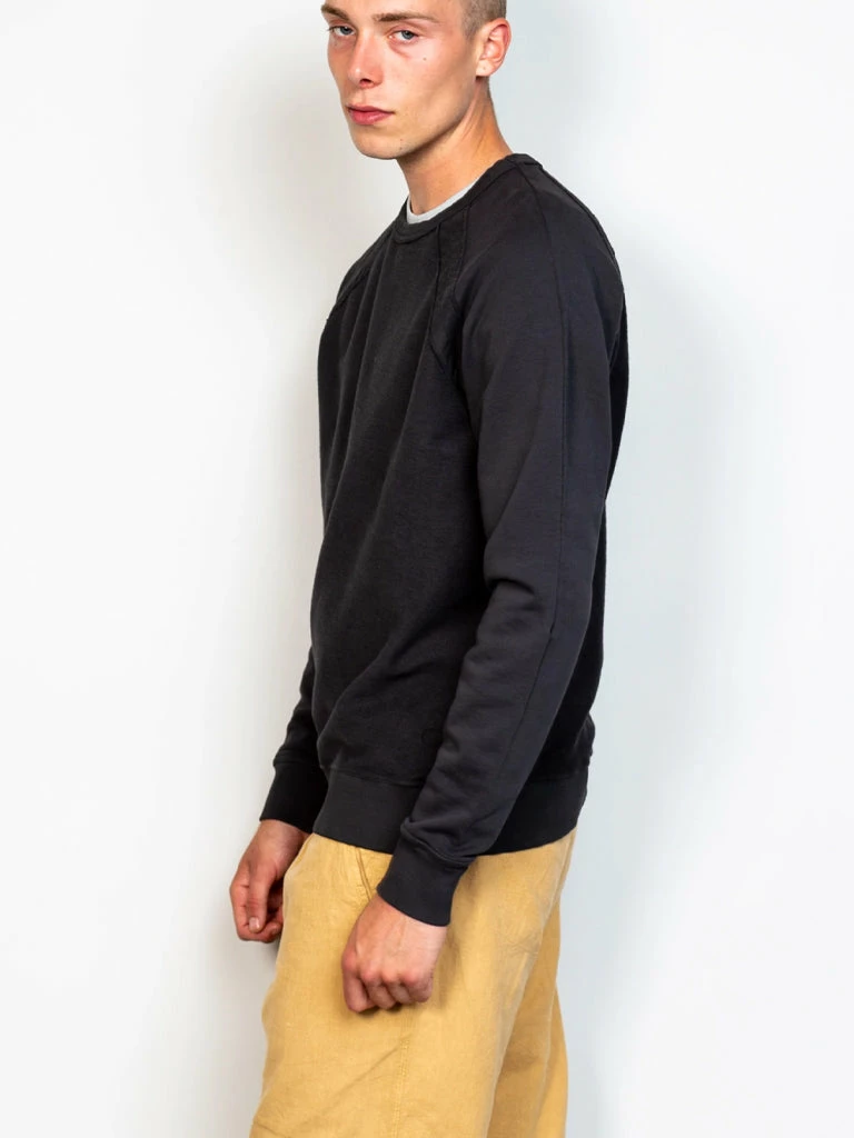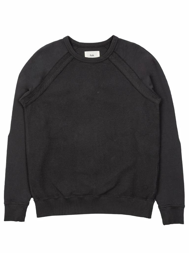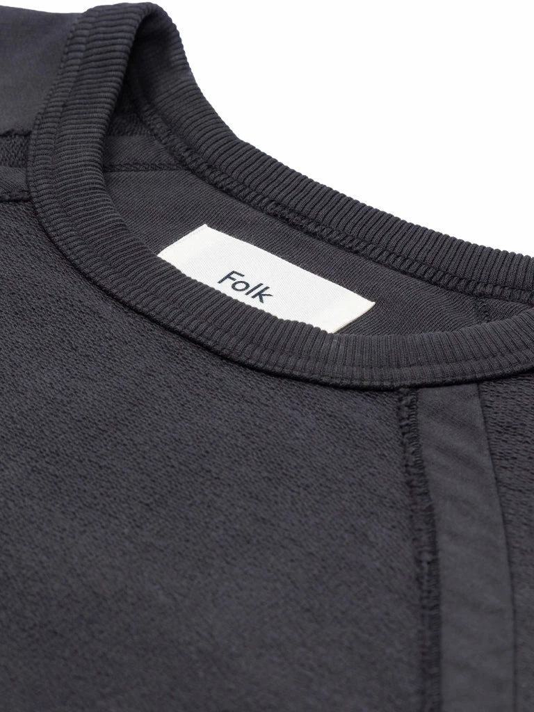 The Reworked Rivet Sweat is a new take on a Folk classic. Crafted from 100% cotton, the body of garment has jersey loopback used on the reverse side, while the sleeves are in jersey loopback used on the face side. Featuring a chunky 2×2 rib crew neck collar, cuffs and hem. Finished with a raglan sleeve with reverse seam detailing and a signature metal rivet at the end. Garment dyed giving depth and character of colour. 100% Cotton Dart detail at sleeve as per our classic rivet sweat Body of garment is in jersey loopback used on reverse side Sleeves are in jersey loopback used on face side Miniature metal rivet at end of dart in matching colour to sleeve Raglan sleeves feature reverse seam detail with cover-stitch Top stitching detail at side seams Chunky 2×2 rib crew neck collar, cuffs and hem; secured with twin-needle Circle embroidery stitch branding detail Garment dyed for depth of colour Model is 6ft and wears size M