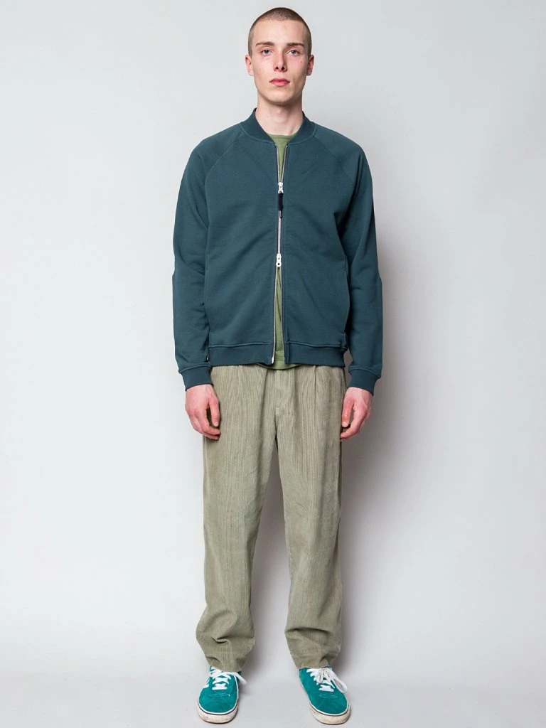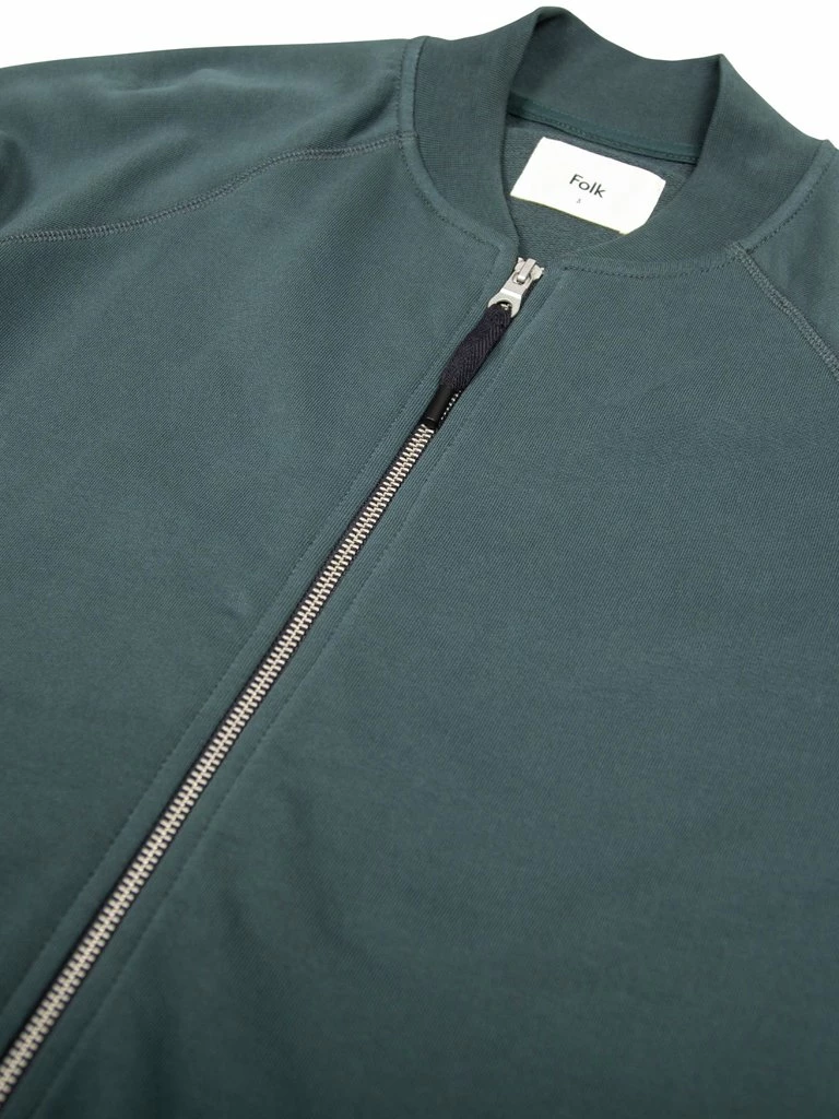 The Rivet Bomber from Folk is designed in a classic bomber style. Crafted from 100% cotton loopback jersey fabric with smooth brushed face, it is finished with raglan sleeves and clean, in-seam pockets. 100% cotton loopback jersey with smooth brushed face Raglan sleeve with dart detail; taken from our rivet sweat Miniature metal rivet at end of dart in matching colour to body Clean, in-seam pockets at front Double ended metal zip closure at centre front Rib crew neck bomber collar, cuffs and hem Our model is 6ft and wears size M