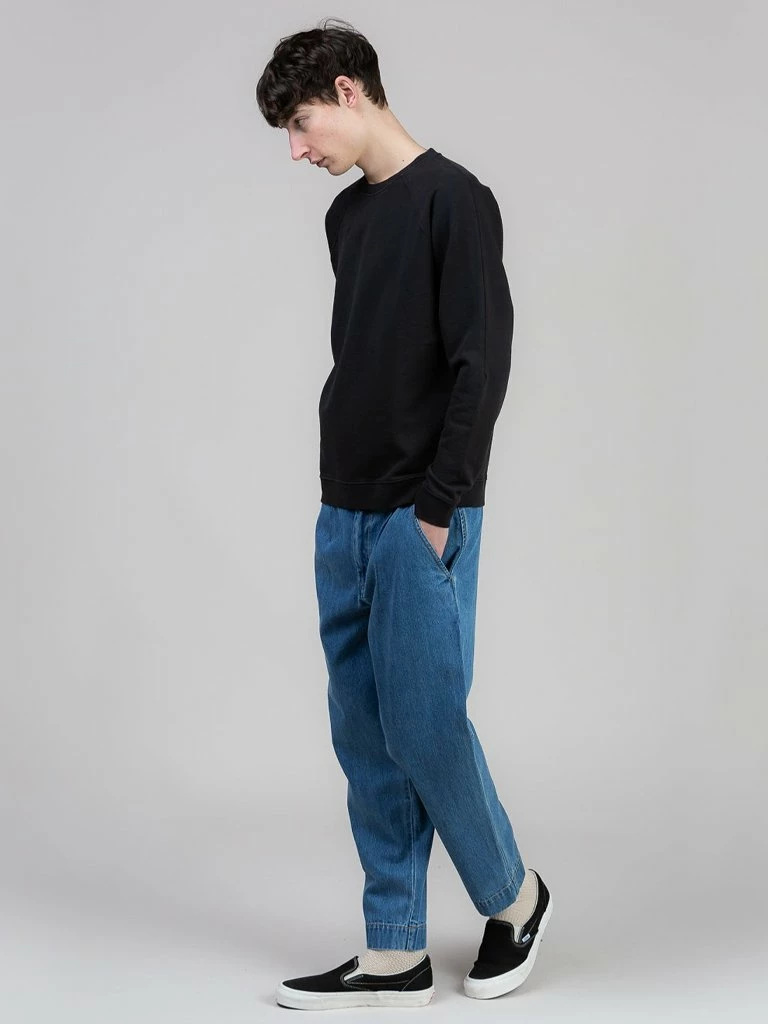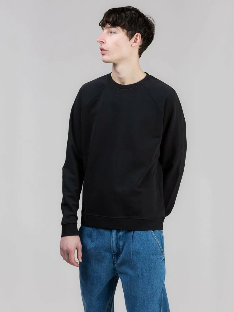 The Rivet Sweat is a Folk classic. Crafted from 100% cotton loopback jersey, it has a rib crew neck collar, cuffs and hem. Featuring a raglan sleeve with a dart detail and signature metal rivet at the end. Garment dyed giving depth and character of colour. 100% cotton loopback jersey Classic fit sweat Raglan sleeve with dart detail Metal rivet at end of dart Rib crew neck collar, cuffs and hem Machine wash