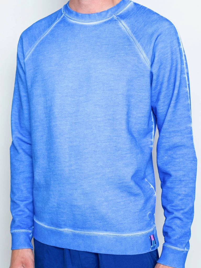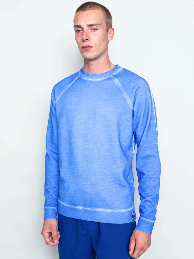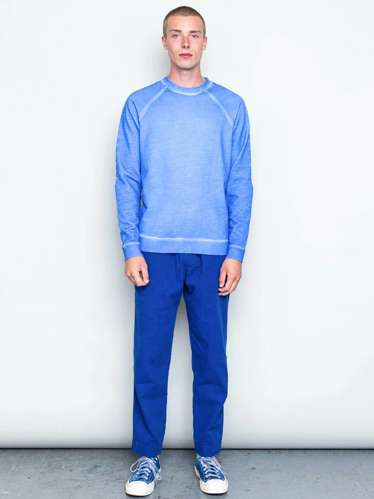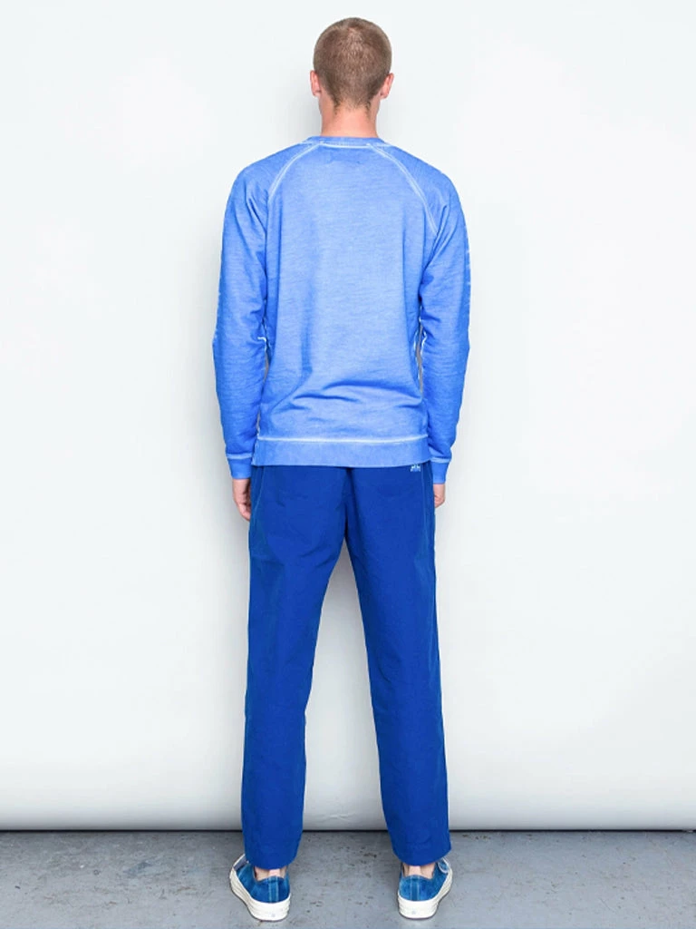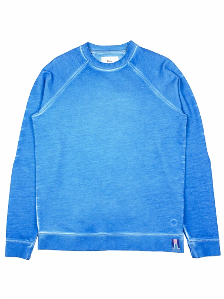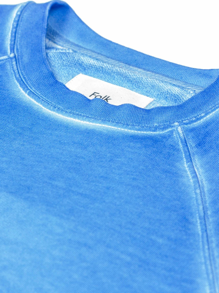 The Rivet Sweat is a Folk classic. Crafted from 100% cotton loopback jersey with a smooth brushed face, it has a rib crew neck collar, cuffs and hem. Featuring a raglan sleeve with a dart detail and a miniature metal rivet at the end of the dart in matching colour to body. Made using a cold dye process which uses vegetable dye, the garment is dipped to create an uneven spread of colour. 100% cotton loopback jersey Classic fit sweat Part of Folk’s seasonal collaboration with artist, Damien Poulain Raglan sleeve with dart detail Metal miniature rivet at end of dart Rib crew neck collar, cuffs and hem Made using a cold dye process which uses vegetable dye and the garment is dipped; creating the uneven spread of colour Machine wash The model is 6ft and wears size M