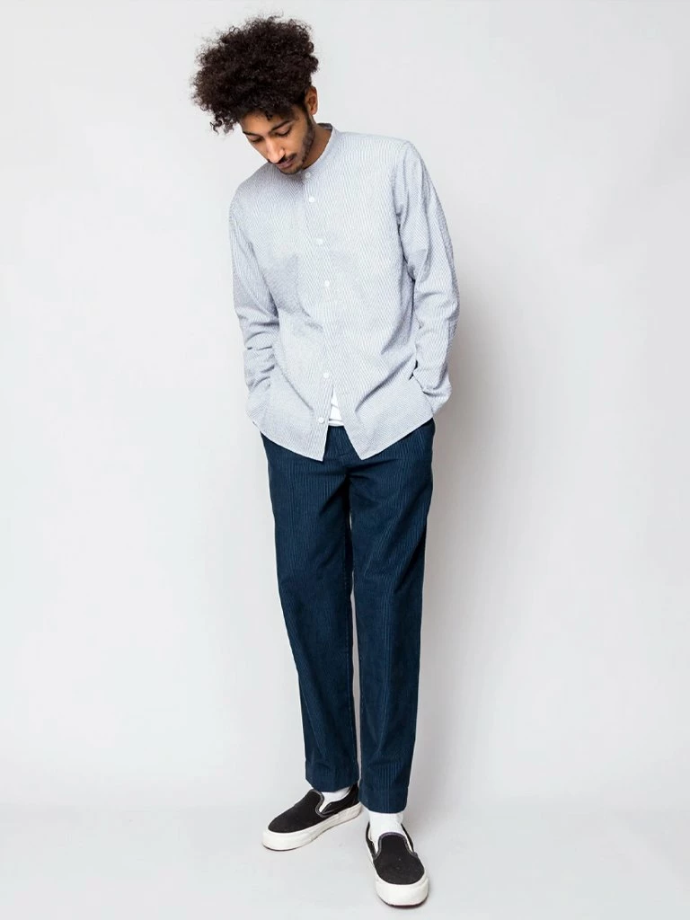 Cut for a wider, looser fit, these Signal Pants by Folk are a slightly cropped length. Crafted from 100% cotton, they offer a cord texture. Finished with pleat detailing and two slanted pockets at the front, and a straight welt pocket at back left side with metal zip closure. 100% Cotton Garment is unlined and neatly bound internally in 100% cotton poplin Slanted pockets at the front Straight welt pocket at back left side with metal zip closure and profile stitch detail Garment dyed for depth of colour Wash cold