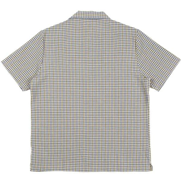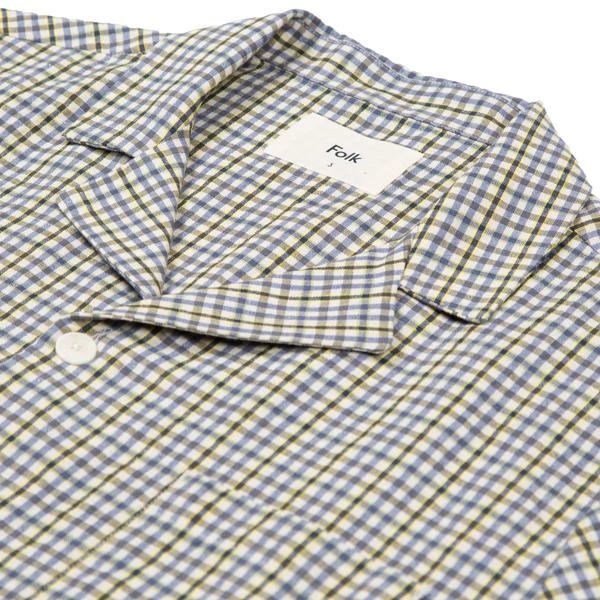 This 50’s style short sleeve shirt comes with a boxy fit, crafted in an Italian cotton blend fabric, featuring a summery check design and subtle surface texture. Clean, straight hem, with split vent at side seam Corozo nut button closure at centre front Garment washed to add softness to the hand feel and give a more lived-in feel 26% Cotton, 26% Polyester, 26% Viscose, 22% Linen Care: Machine wash cold