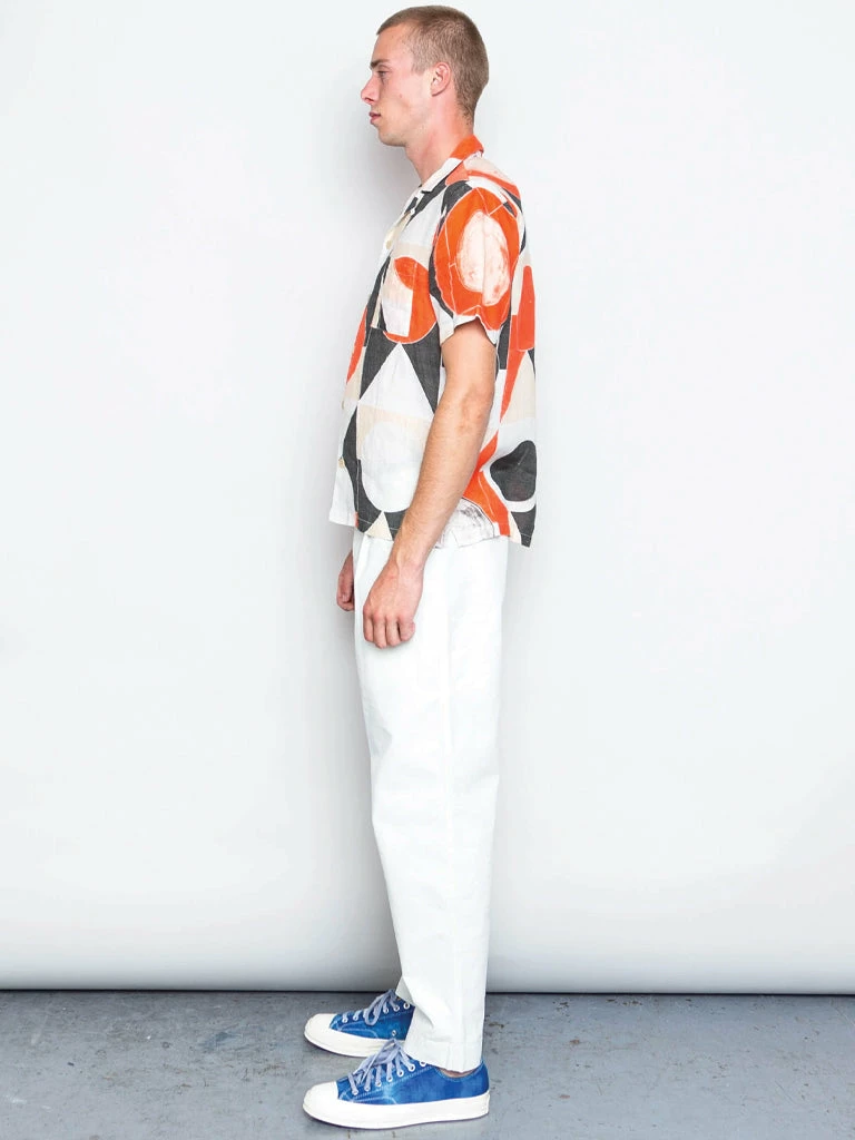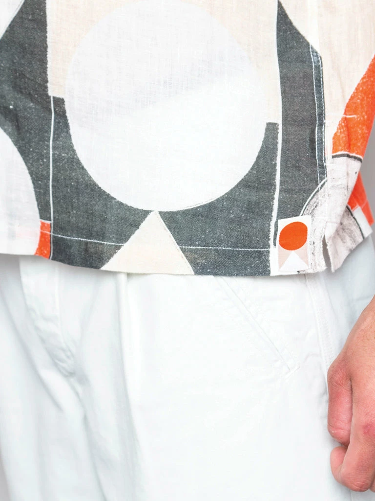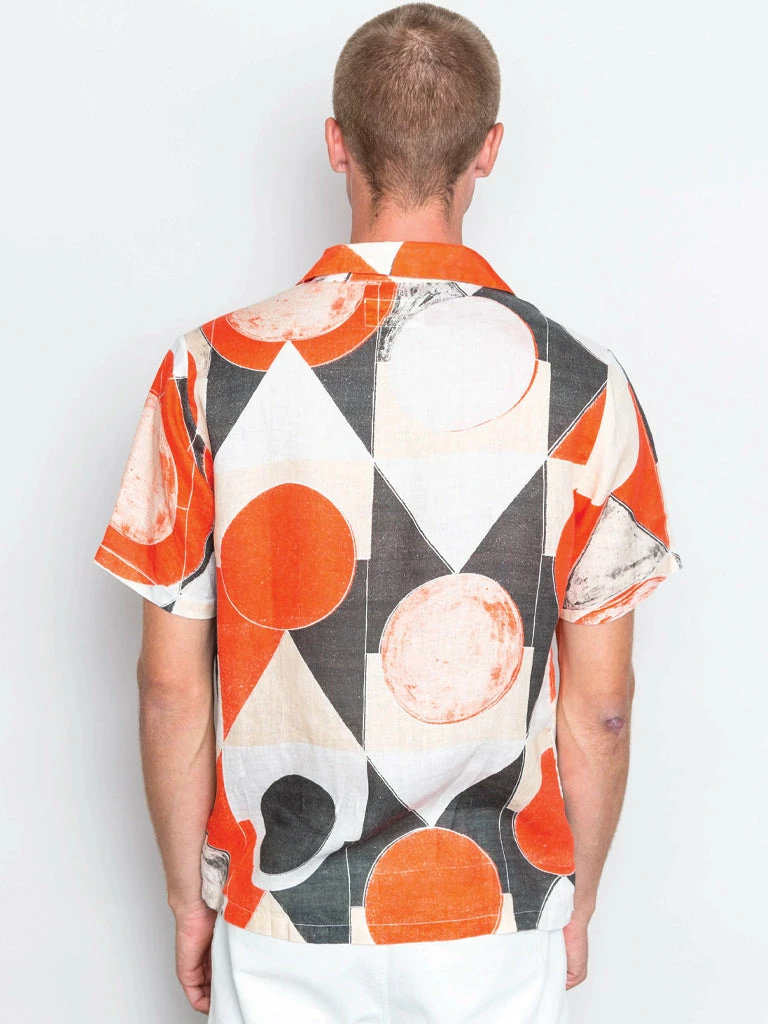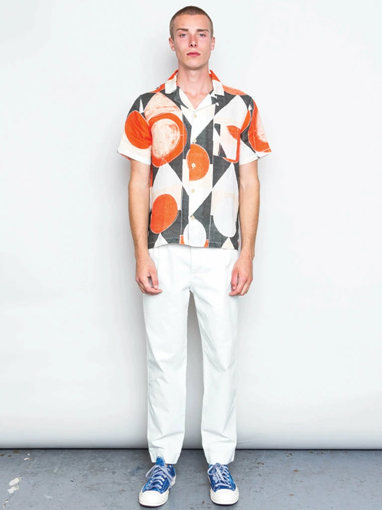 Folk’s Soft Collar Shirt is crafted from 100% linen with a unique print design by artist Damien Poulain. Designed in a boxy 50’s style, the shirt is finished with a clean, straight hem and a split vent at the side seam. Garment washed to add softness and a more lived in feel. 100% linen fabric with slubby texture and soft hand feel Linen 50’s style boxy shirt Clean, straight hem, with split vent at side seams Unique design as part of the Folk collaboration with artist, Damien Poulain Corozo nut button closure at centre front Machine wash cold Model is 6ft and wears size M