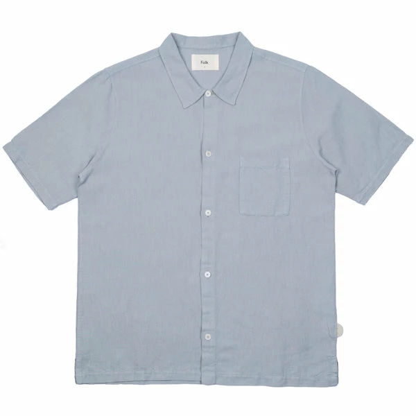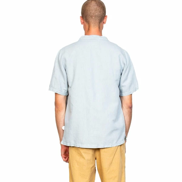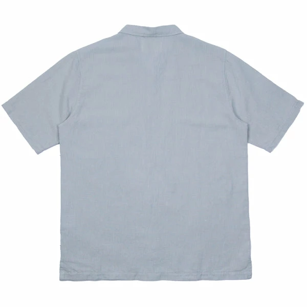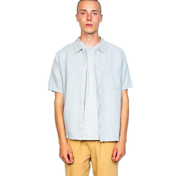 Cut from a linen and cotton blend this relaxed fit, short sleeve shirt is garment dyed giving it a depth of character and colour with a subtle surface texture. Featuring contrasting corozo buttons and a chest patch pocket. Details: Spread collar shape with half moon stand. Grown on placket at centre front with corozo nut button closure. Square patch pocket at chest. 56% Linen, 44% Cotton