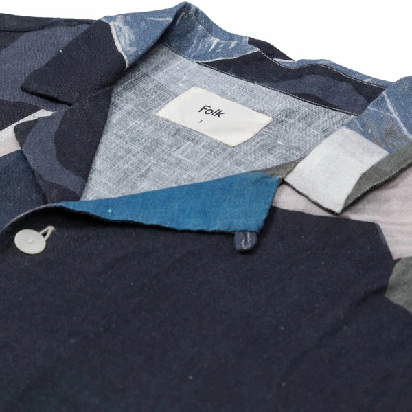 A Folk best selling style, this boxy fit, 50’s style, short sleeve shirt comes in an exclusive print design created by Folk. The 100% linen fabric comes with a natural slubby texture and soft hand feel which is also garment washed to add softness and a more lived in feel. This Shirt has a straight hem, with split vents at the side seam and Corozo nut button fastening. Details: 100% Linen, Clean straight hem with split vent at side seam, Corozo nut button closure at centre front, Archival print design created by Folk