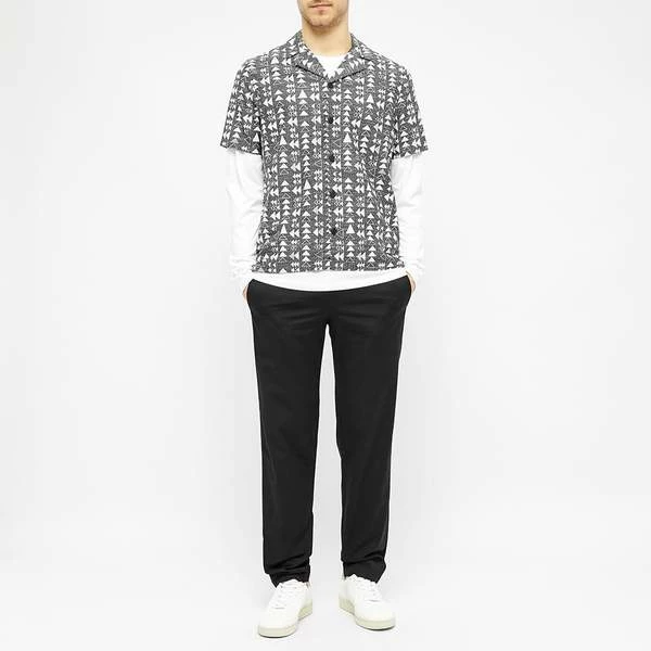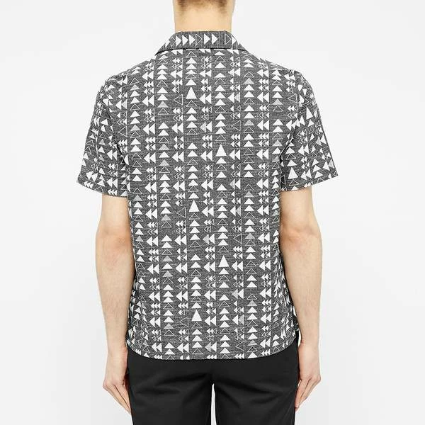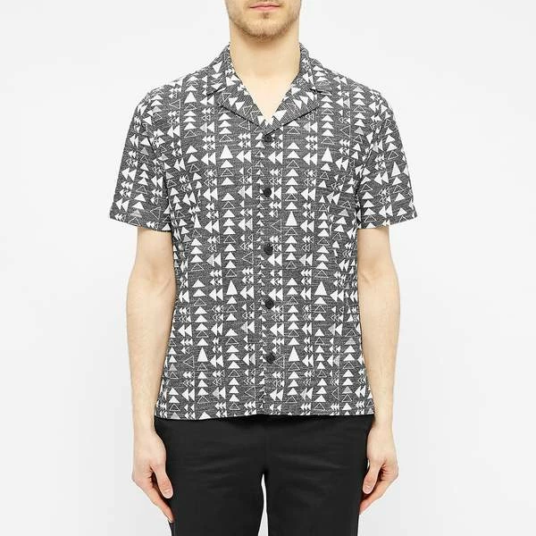 Folk best seller Boxy fit 50’s style short sleeve shirt block – Clean, straight hem, with split vent at side seam – Corozo nut buttons – Textured navy base with a bold, graphic print on top in white that has been designed in house by Folk – Garment washed to add softness and give a more lived-in feel – 100% Portuguese Cotton Machine wash FM5337