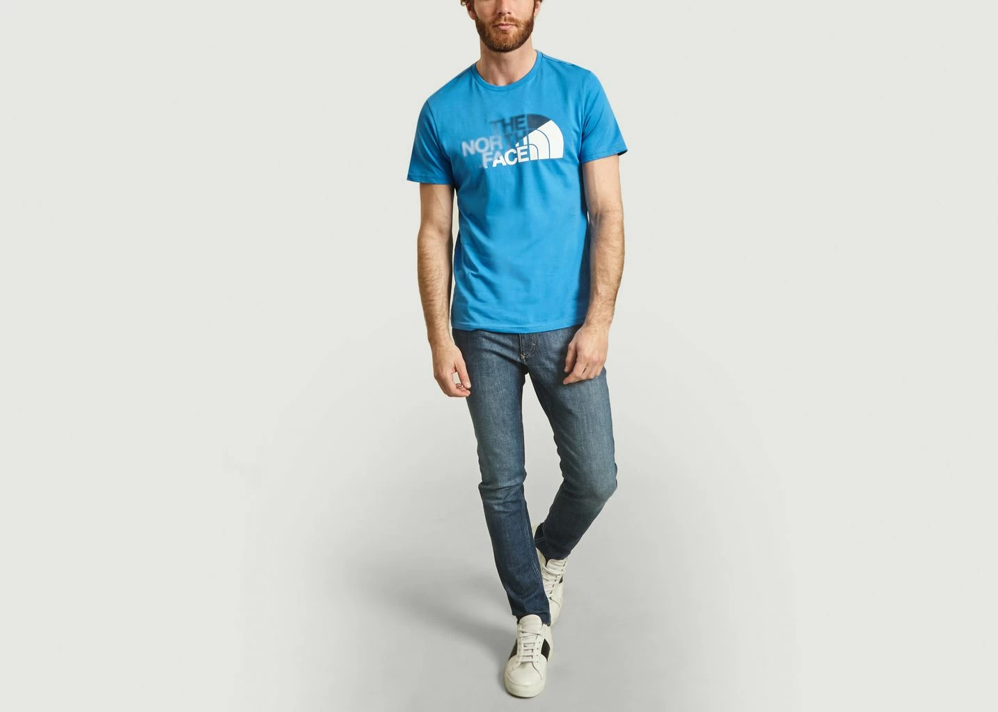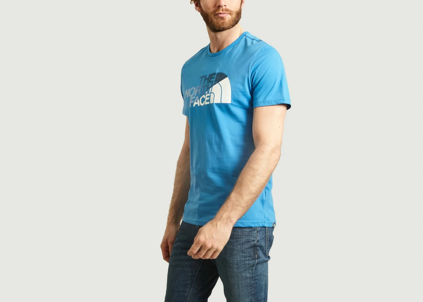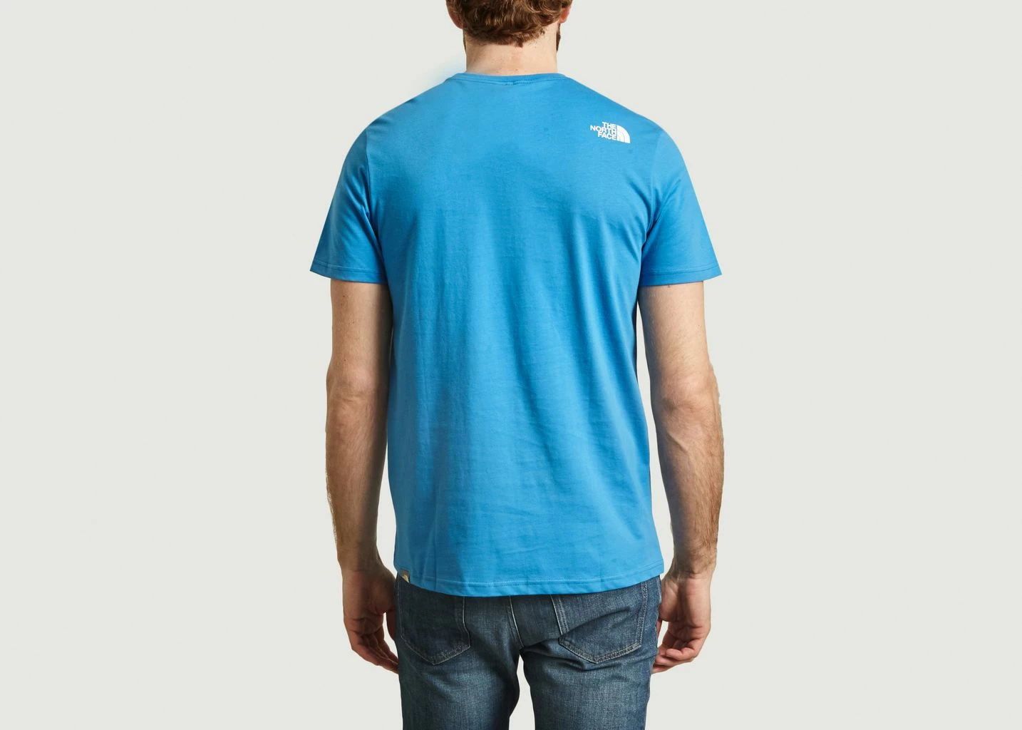 Light blue cotton jersey t-shirt, 160 G/M², short sleeves, round collar, large graphic print on the front, logo on the back, tone-on-tone sewn finish, straight cut