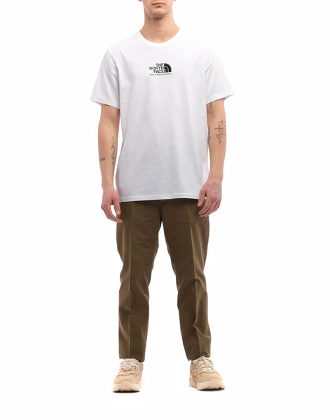 Basic total white t-shirt by The North Face, with ribbed neckline and short sleeves. Contrasting black logo printed on the front and back. Suitable for every day. 100% cotton Color: White