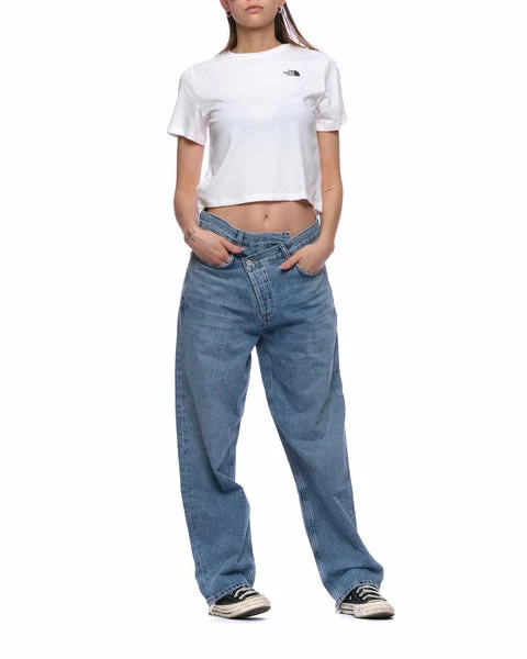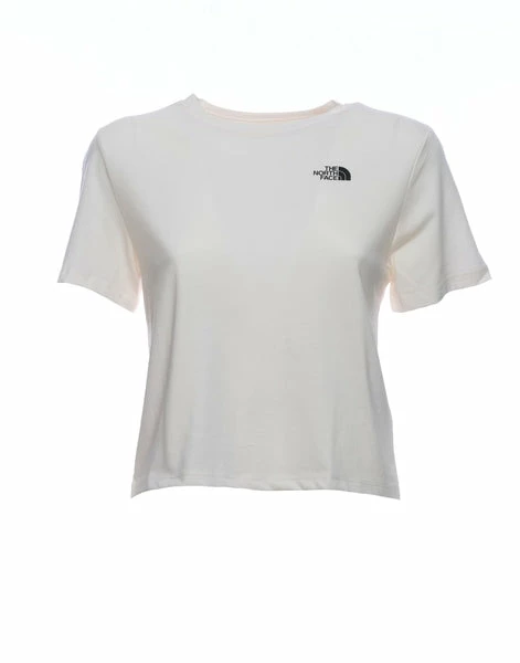 The north face T-shirt has a regular fit: this garment is the exact size for a comfortable and right fit. There is the logo on the front. 50% cotton 50% polyester Color: white