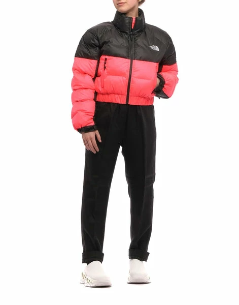 Women’s jacket padded with synthetic material, stands out for its color-block fluorescent pink and black, and for the crop bomber style fit. With high collar, her zip closure on the front and 100% polyester Color: Black / fluorescent pink