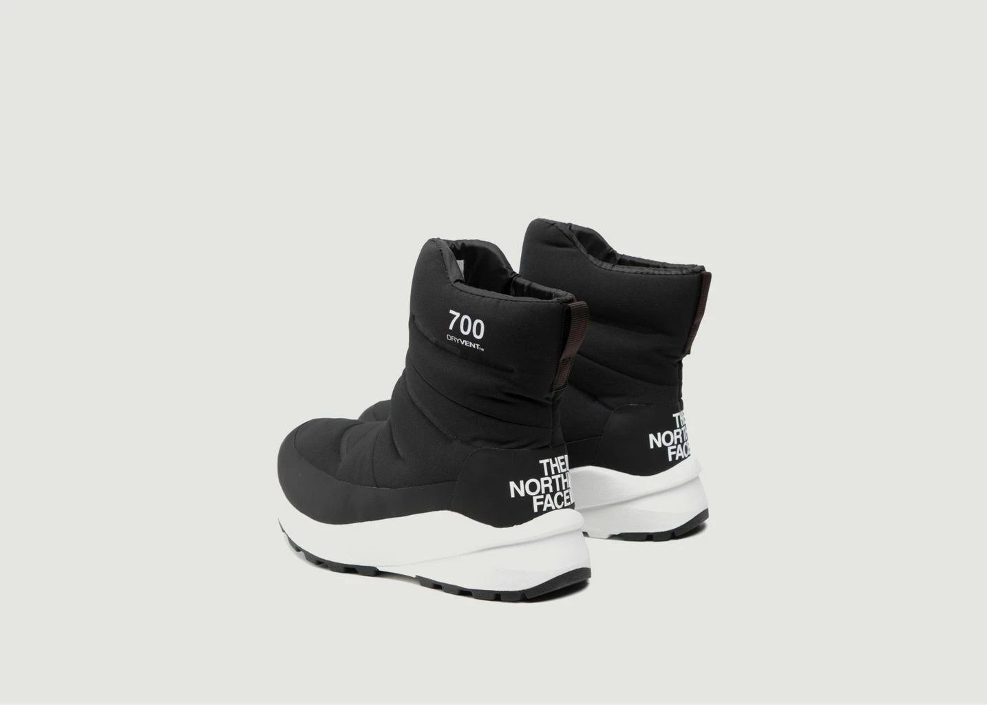 Waterproof boots in black and white, made of recycled polyester and goose down 700. Waterproof upper. Durable and protective reinforcements. Waterproof DryVent membrane. Durable heel strap and waterproof front zipper for easy on and off. 100% of the virgin down used by The North Face® is Responsible Down Standard (RDS) certified by Control Union. Technical Feature: – OrthoLite® footbed – Single density EVA midsole – Quality EVA outsole is lightweight and offers optimal durability – Surface Control rubber outsole optimized for winter conditions. Winter is on its way, indulge in this pair of waterproof boots offered by The North Face all for a casual look!