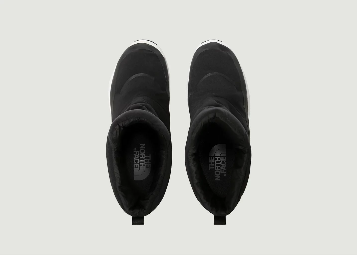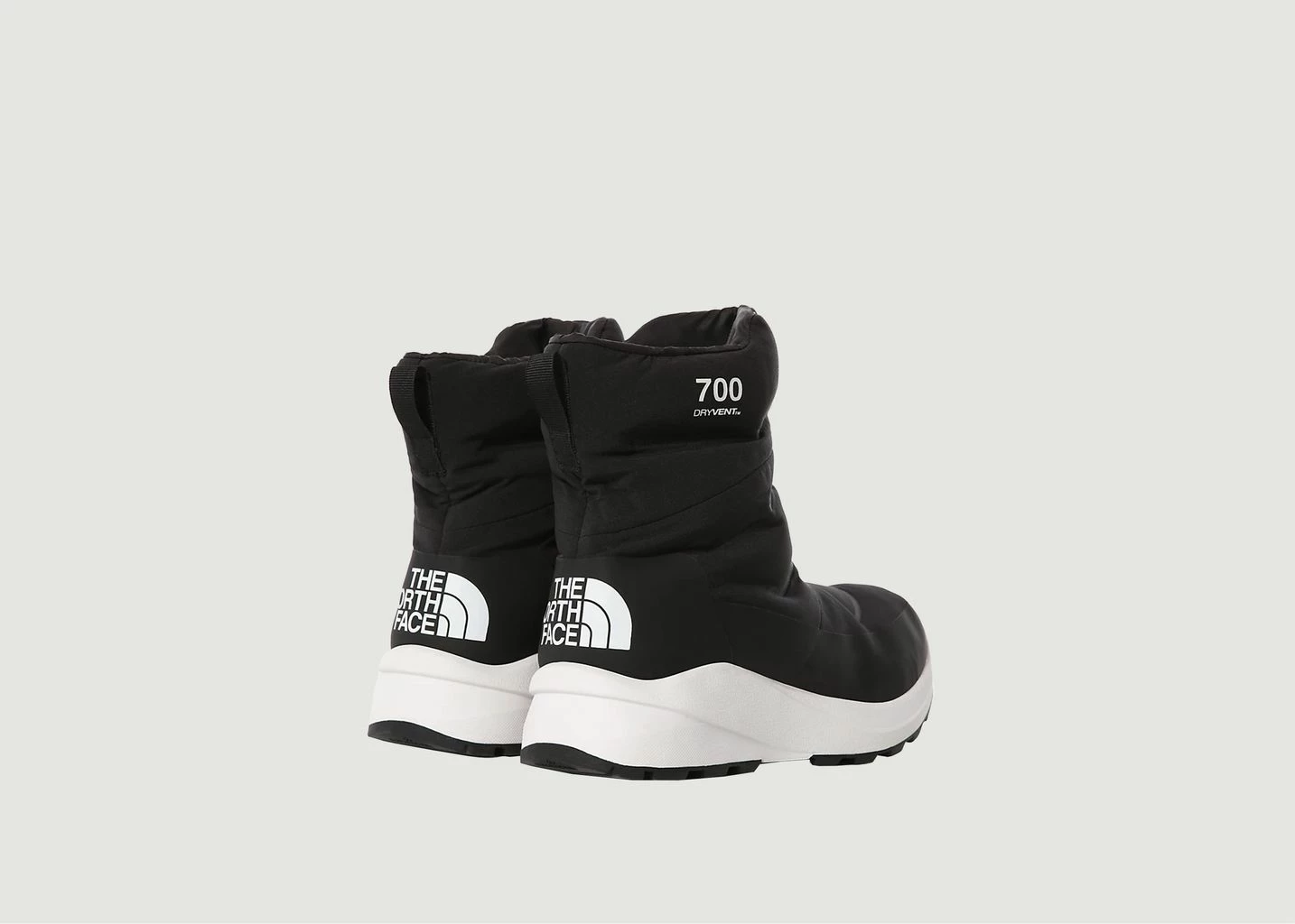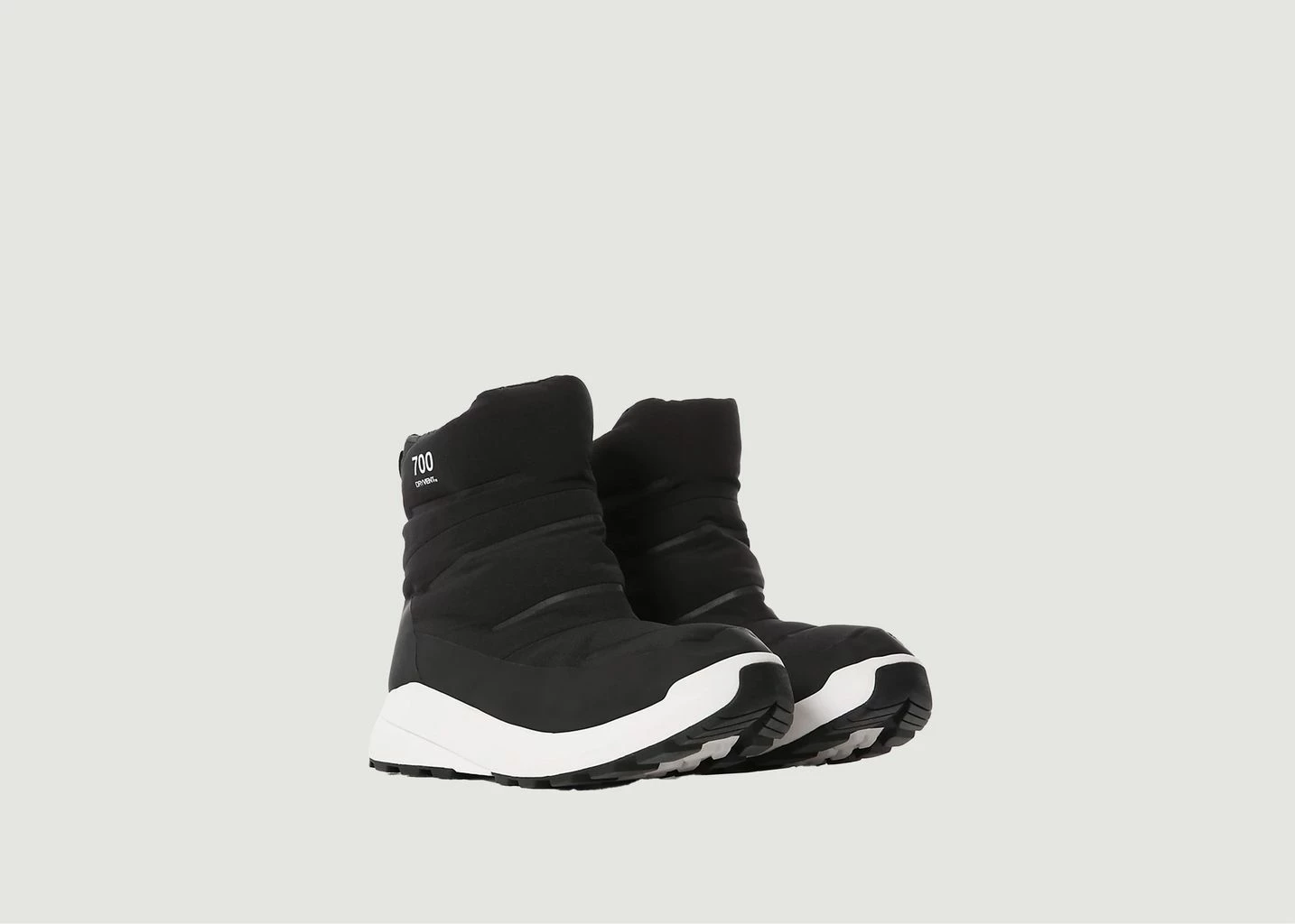 Waterproof boots in black and white, made of recycled polyester and goose down 700. Waterproof upper. Durable and protective reinforcements. Waterproof DryVent membrane. Durable heel strap and waterproof front zipper for easy on and off. 100% of the virgin down used by The North Face® is Responsible Down Standard (RDS) certified by Control Union. Technical Feature: – OrthoLite® footbed – Single density EVA midsole – Quality EVA outsole is lightweight and offers optimal durability – Surface Control rubber outsole optimized for winter conditions. Winter is on its way, indulge in this pair of waterproof boots offered by The North Face all for a casual look! Translated with www.DeepL.com/Translator (free version)