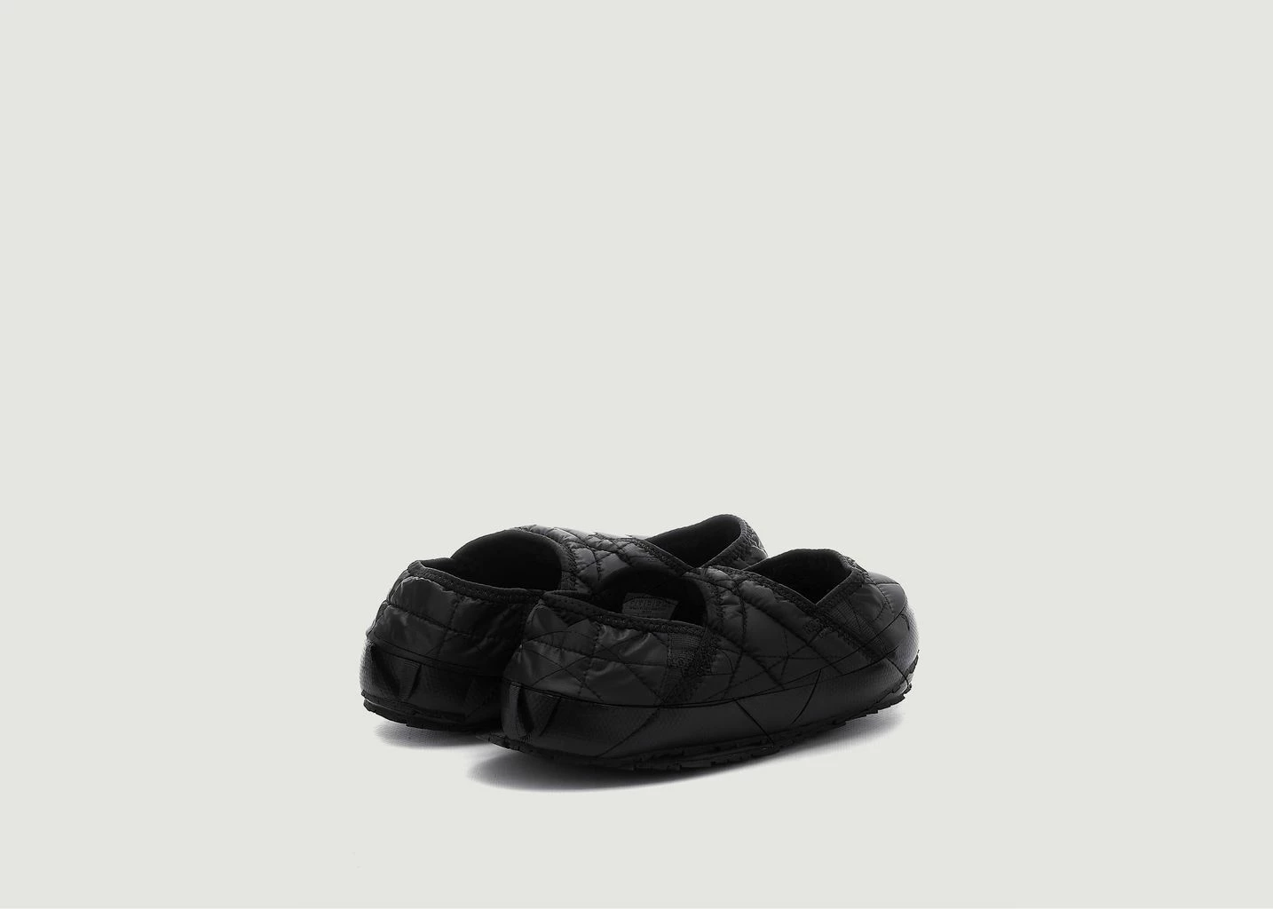 Black recycled polyester slippers. ThermoBall insulation, fleece lining Ultra-grip rubber outsoles. Technical features: – 100% recycled Ripstop, rugged and water resistant – PrimaLoft® ThermoBall™ Eco synthetic insulation – Comfortable Oso fleece lining – Soft heel with Gore-Tex elastic side inserts – 40% recycled rubber outsole for optimal traction Embrace these slippers for tackling the snow when you pick up your morning paper or relaxing by the campfire after a long day on the mountain.