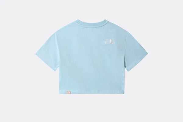 Camiseta cropped manga corta The North Face para mujer. Confeccionada en tejido de algodón suave y elástico. Logotipo de TNF en la parte delantera y trasera. Color: Beta Blue Modelo: NF0A55AO3R31 Marca: The North Face