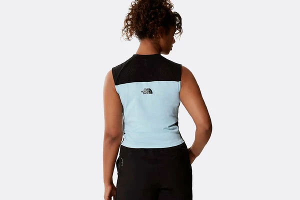 Top corto ajustado sin mangas para mujer Sunriser de la marca The North Face. Confeccionada en tejido suave de poliéster y algodón de secado rápido. Diseño en bloques de color. Silueta corta. Corte ajustado. Logotipo de TNF en el lado izquierdo del pecho. Materiales: Tejido De La Parte Lisa (Punto 50 % Algodón, 50 % Poliéster De 150 G/M²) Tejido De La Parte Jaspeada (Punto 90 % Algodón, 10 % Poliéster De 140 G/M²). Color: Beta Blue Modelo: NF0A7R263R31 Marca: The North Face